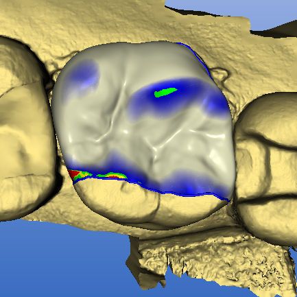 Eine CEREC-Keramik wird defektorientiert präpariert. Von dem betroffenen Zahn wird nur das alte Füllungsmaterial, die Karies und instabile Zahnsubstanz entfernt. Gesunde Zahnsubstanz bleibt stehen, der Zahn wird nur teilweise überkront, man spricht in diesem Fall von einer Teilkrone. Der Zahn wird optisch abgeformt; digitalisiert. (Kein Abdruck - kein Silikon). Das ist für Patienten mit Würgereiz eine oft leicht erträgliche Alternative.