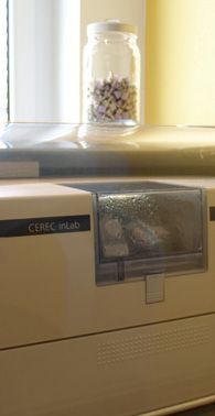 In der gleichen Sitzung erfolgt das Formschleifen der CEREC-Keramik in einer CNC-Fräßmaschine. Die neue vollkeramische Teilkrone oder Einlagefüllung kann danach formschlüssig mit dem Zahn verklebt werden. Diese Verklebung (Adhäsivtechnik) bewirkt eine physikalische Wiederherstellung des Zahns.